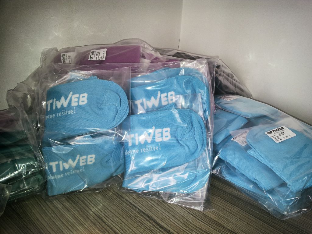 We first started to give out socks with our logo back in 2012; because the response was excellent, we still delight the small and large feet of our customers with our custom made socks.