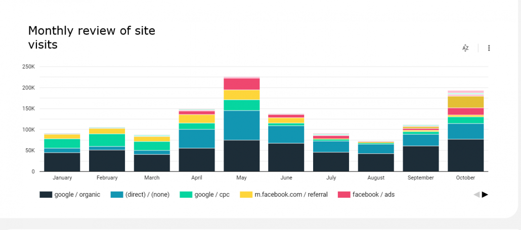 Google Data Studio enables reporting in real time, which means the data in the report are always fresh. Moreover, you can use filters to focus on a certain time window or compare the data for different periods.