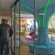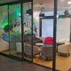 Enormous windows make sure that the office is bright and they offer a view on the terrace, while the glass wall offers the view of the hallway. There are six people in each office. Closed offices guarantee greater concentration and less distractions that could potentially disrupt the work. There is a calming quietness with soft music playing in the background. Another characteristic of their offices is that they are named after smaller cities from all around the world. One of the empty offices was even named “Škofja Loka” for a while, which we thought was extremely cool.
