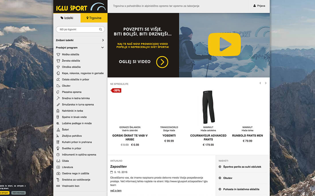 Iglu Šport is the leading company in the sale of outdoor equipment in Slovenia. They offer numerous products from top foreign manufacturers – Mammut, LaSportiva, Montura, Patagonia, Camp, etc.