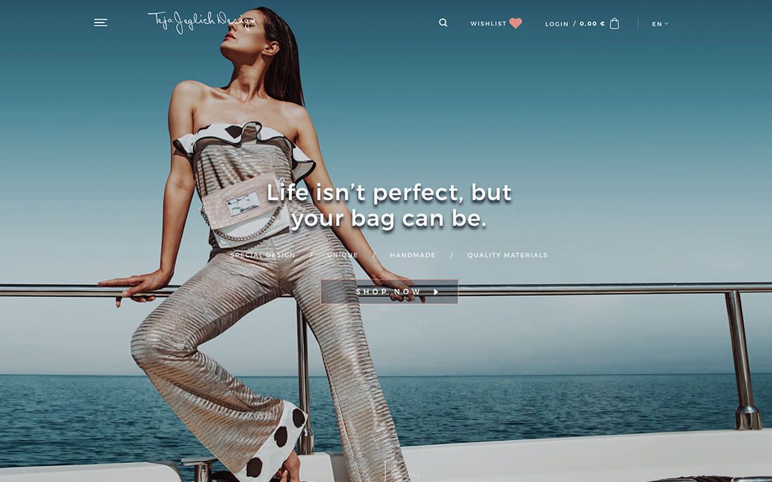 Her products were shown on a presentation website, which was sadly not an eCommerce website. She used Facebook for communicating with her target group. With her quality products she quickly established herself in the world of fashion and the social network Facebook was no longer sufficient as a channel for presenting and selling her products.