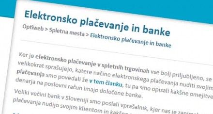 Ker je elektronsko plačevanje v spletnih trgovinah vse bolj priljubljeno, se podjetja, ki želijo imeti spletno trgovino velikokrat sprašujejo, katere načine elektronskega plačevanja nuditi svojim strankam. Več o načinih elektronskega plačevanja smo povedali že v tem članku, tu pa smo opisali kakšne omejitve glede elektronskega plačevanja in prenosa denarja na poslovni račun imajo določene banke.