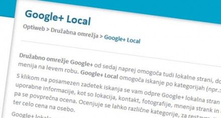 Slika: Primer Google+ lokalne strani podjetja Optiweb.