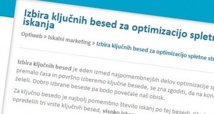 Izbira ključnih besed je eden izmed najpomembnejših delov optimizacije spletnih strani za iskalnike. Če ji posvetimo premalo časa in površno izberemo ključne besede, se zna zgoditi, da na koncu ne bomo videli rezultatov, ki smo jih želeli. Dobro izbrane besede pa bodo povečale naš obisk.