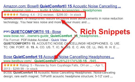 Verjetno je omenjeni dodatek k iskalnim zadetkom požel največje navdušenje iz strani SEO mojstrov. Rich snippets ali po Slovensko značke, Googlu posredujejo dodatne informacije o vaši spletni strani, zato, da so lahko vaši iskalni zadetki bolj osebni in koristni ljudem, ki iščejo vsebino. Te značke zelo enostavno dodate na vašo spletno stran s pomočjo kode, to pa nato povežete na vaše G+ omrežje. Na tak način se pod iskalnimi zadetki vašega podjetja prikažejo tudi ocene in mnenja strank, število sledilcev, slike in celo cena določenega izdelka.