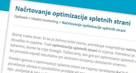 Skoraj vsaka stvar, ki se jo želimo lotiti resno, potrebuje vnaprejšnje načrtovanje, če želimo iz nje potegniti določene dosežke in uspehe. Optimizacija spletnih strani ni nobena izjema. Potrebno je skrbno zastaviti določene cilje in sredstva s katerimi bomo te cilje dosegli. Toliko bolj, ker gre pri optimizaciji spletnih strani za iskalnike za dolgoročno zadevo, ki bo prinesla največ rezultatov pri skrbnem izvajanju določenih smernic.