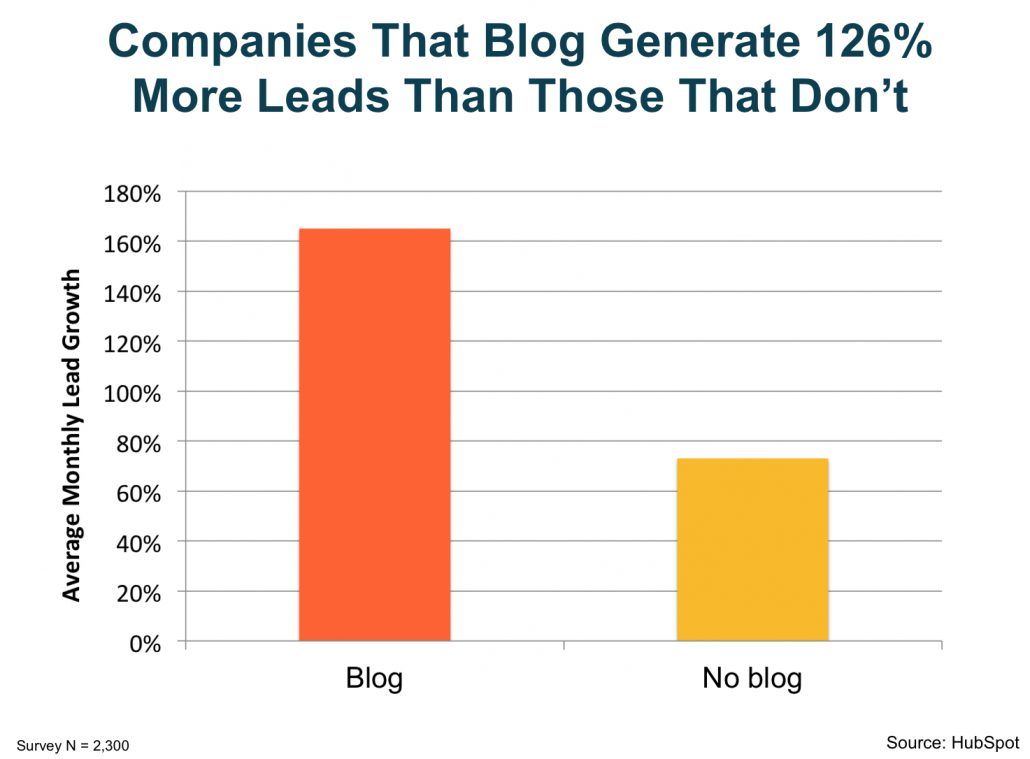 V študiji, ki jo je opravil HubSpot so odkrili, da podjetja, ki uporabljajo blog, generirajo 126% več novih strank, kot podjetja, ki bloga nimajo.