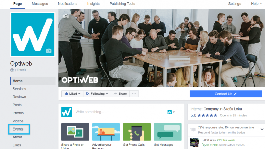 Prvi korak je seveda ustvariti dogodek. Za razliko od osebnega profila, kjer morajo osebe, ki lahko vidijo vaše objave, najprej sprejeti vašo prošnjo za prijateljstvo, je na poslovnem profilu pomemben všeček strani — ta vsakemu sledilcu omogoča, da vidi vsebino, ki jo objavljate na strani. Z objavo dogodka na Facebook-ovi poslovni strani se tako močno poveča njegova vidnost, ta pa posledično vpliva tudi na večjo udeležbo.