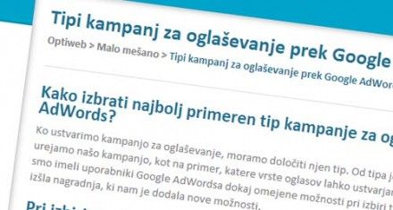 Kako izbrati najbolj primeren tip kampanje za oglaševanje prek Google AdWords?