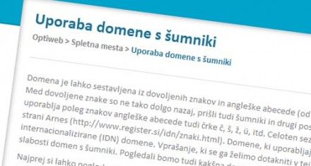 Domena je lahko sestavljena iz dovoljenih znakov in angleške abecede (od A do Z), številk (0 – 9) in znaka – (vezaja). Med dovoljene znake so ne tako dolgo nazaj, prišli tudi šumniki in drugi posebni znaki. Naša .si domena tako lahko uporablja poleg znakov angleške abecede tudi črke č, š, ž, ü, itd. Celoten seznam dovoljenih znakov najdete na spletni strani Arnes (https://www.register.si/seznam-dovoljenih-znakov/). Domene, ki uporabljajo posebne znake, se imenujejo se tudi internacionalizirane (IDN) domene. Vprašanje, ki se ga želimo dotakniti v tej objavi pa je, kakšne so prednosti oziroma slabosti domen s šumniki. Pogledali bomo tudi kakšna domena je boljša z vidika optimizacije za spletne strani.