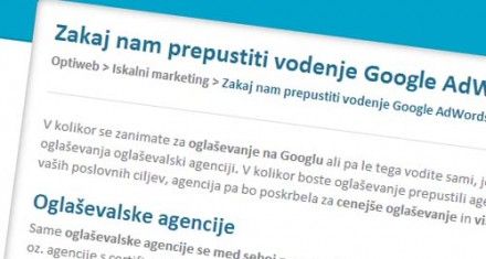 Več o razlikah med Google oglaševanjem in optimizacijo spletnega mesta si lahko preberete v članku ‘Google oglaševanje ali optimizacija spletnih strani‘.